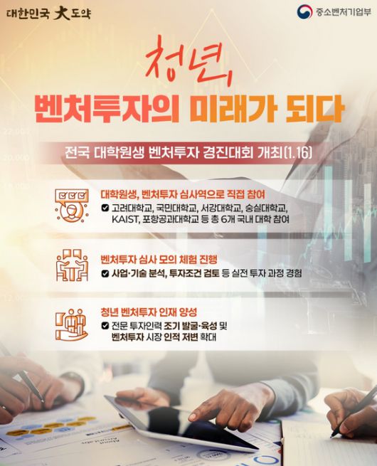 중소벤처기업부는 벤처투자 예비인재 양성을 위한 전국 대학원생 벤처투자 경진대회를 16일 KAIST 대전 문지캠퍼스에서 개최한다고 밝혔다.