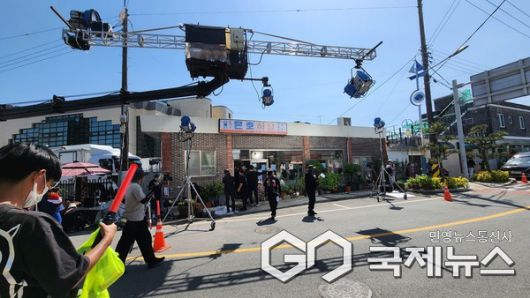 <만약에 우리> 촬영팀은 지난 2024년 5월 10일부터 5월 13일까지 3일간 남해에서 촬영을 했으며, 지족구거리(지족반점), 죽방렴 관람대, 창선교, 지족마을 일원 등 빼어난 풍광을 필름에 담았다.