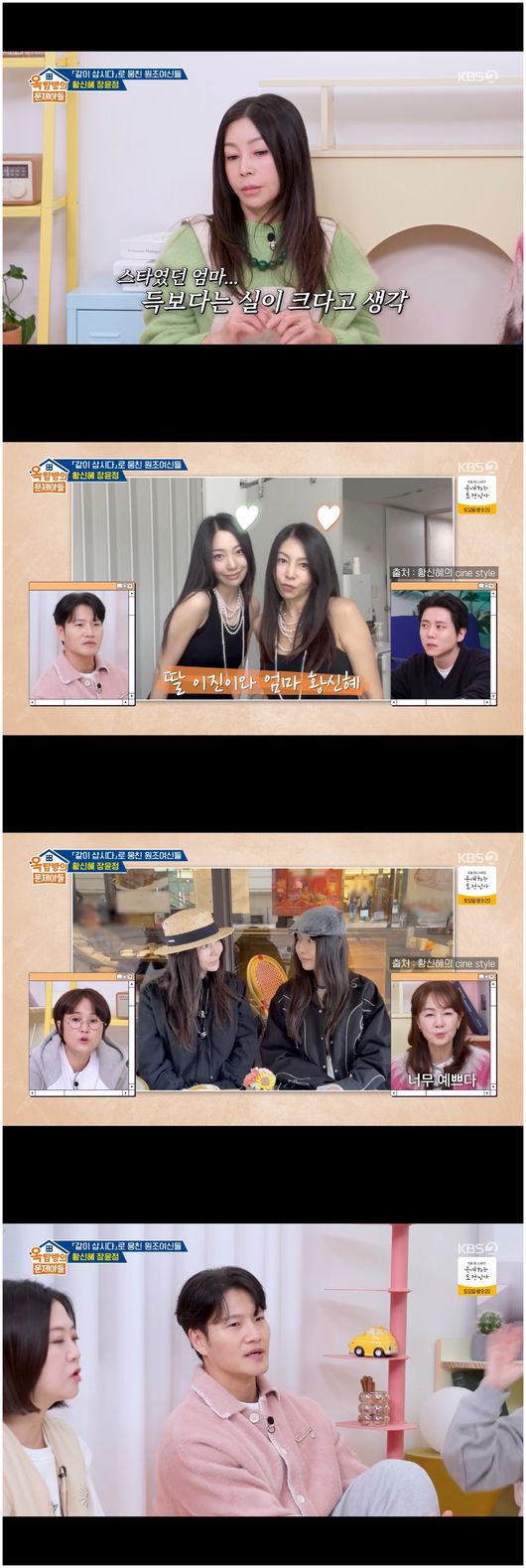 황신혜의 딸 이진이는 14세 나이로 모델로서 데뷔 이후 배우 활동과 화가로 여러 가지 활동을 하고 있다. 송은이는 “얼마 전 드라마 ‘서울 자가에 대기업 다니는 김 부장’에서 배우로 나오지 않았냐”라며 칭찬했다. 황신혜는 “난 제 3자 입장으로 냉철하게 말한다. 연기나 표정도 그렇고, 옷도 왜 저런 걸 입은지. 듣기 싫겠지만, 돌아가 생각하면 내 말이 맞는 것 같다. 내 말을 들어준다”라고 말했다.