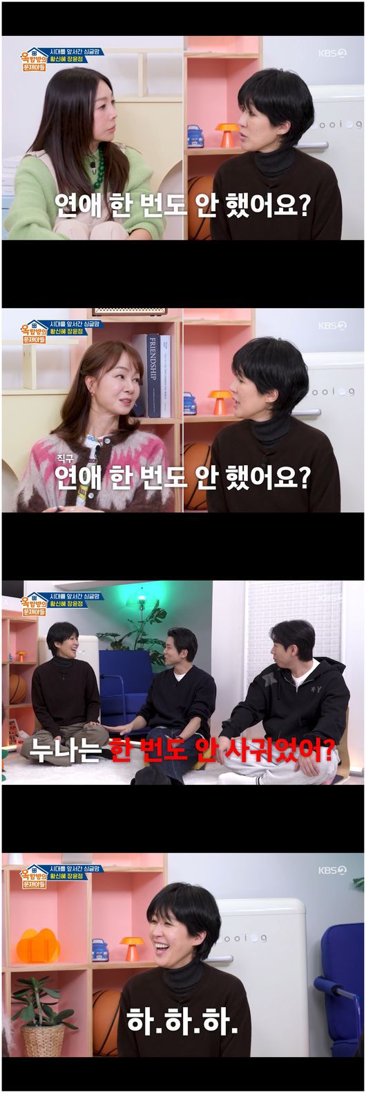 그러자 황신혜는 역으로 홍진경에게 "진경이는 재혼 생각 있어?"라고 물었다. 주우재는 "누난 연애 했어?"라고 더불어 물었다. 이에 홍진경은 어지러운 정신을 부여 잡고 "못 해 봤다. 그리고 결혼 생각 없다"라며 말해 웃음을 안겼다./osen_jin0310@osen.co.kr