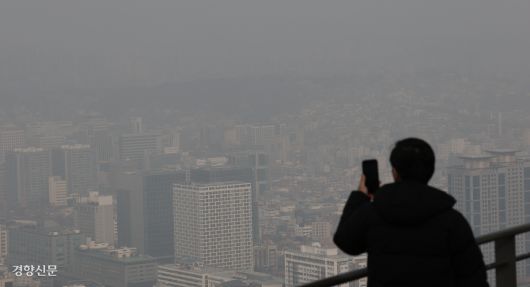 강추위가 물러나자 미세먼지가 찾아왔다. 수도권 등에서 황사를 동반한 미세먼지 농도가 ‘나쁨’ 수준을 기록한 15일 서울 남산에서 바라본 도심이 뿌연 먼지에 휩싸여 있다.