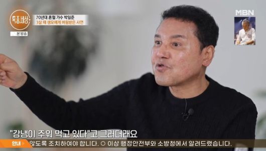 15일 방송된 MBN '특종세상'에는 1970년대 팝 발라드 황제로 불렸던 박일준이 등장했다. 1세대 다문화인 가수로 유명한 박일준에게는 아픈 출생의 비밀이 있다.