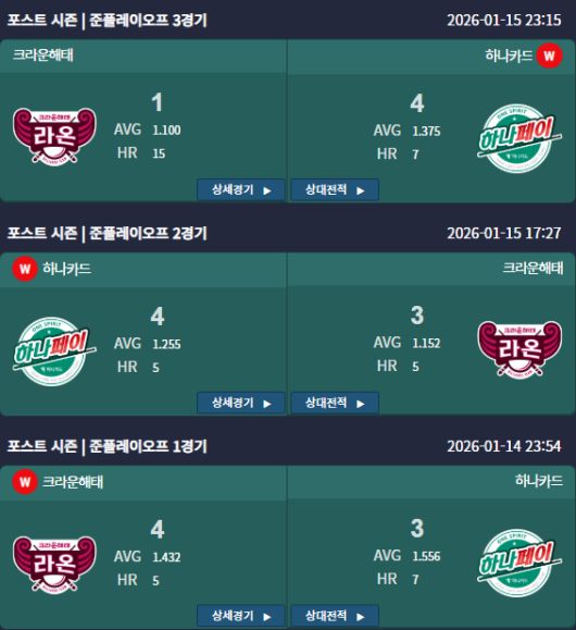 # 기세 탄 하나카드, 3차전 4:1 완승... PO행 확정