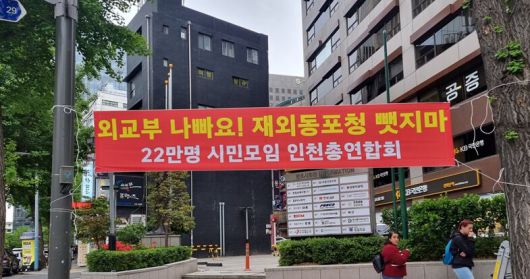 2023년 인천 송도로 확정됐던 재외동포청 본청 위치를 외교부가 변경하려는 움직임을 보이자, 인천 시민들이 ‘이전 반대’ 항의에 나섰다./인천시총연합회 |