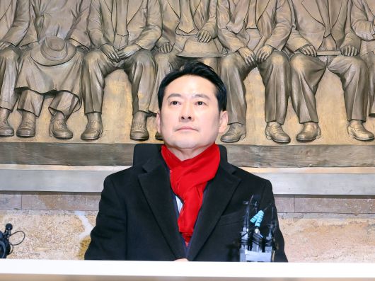 김지호 기자장동혁, 제헌국회 의원상 앞에서 단식농성 국민의힘 장동혁(가운데) 대표가 15일 더불어민주당의 통일교·공천 헌금 특검 수용을 요구하며 국회 중앙홀에 있는 제헌국회 의원 조형물 앞에서 단식 농성을 하고 있다. 왼쪽부터 국민의힘 이인선·김대식 의원, 장 대표, 송언석 원내대표, 박대출 의원. |
