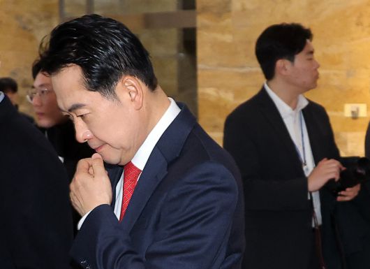 국민의힘 장동혁 대표가 15일 국회에서 의원총회를 마친 뒤 굳은 표정으로 이동하고 있다./연합뉴스 |