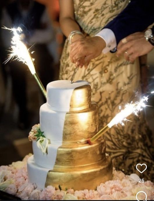 [서울=뉴시스]미니폭죽(스파클러)가 꽂아진 웨딩케이크. 기사 이해를 돕기 위한 사진. (사진출처: SNS 캡처) |