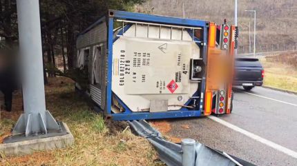 어제(15일) 오전 10시 20분쯤 충북 청주시 남이면 경부고속도로 서울 방향 남청주 나들목에서 60대 A 씨가 몰던 25톤 탱크로리 차량이 넘어졌습니다.