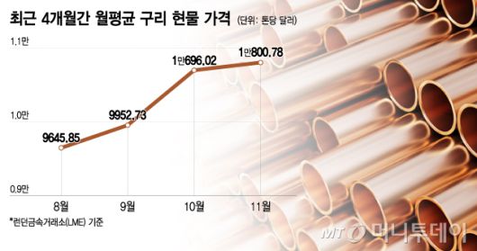 2025년 11월 기준 월평균 구리 현물 가격. /그래픽=이지혜 |