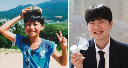 초등학생 시절의 김병수 대표(왼쪽)와 네뷸라이저를 들고 있는 김 대표. /김병수 대표 제공, 더비비드 |