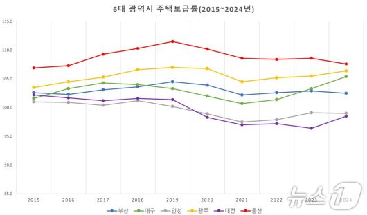2015~2024년 6대 광역시 주택보급률. (울산시 제공. 재판매 및 DB 금지) /뉴스1 |