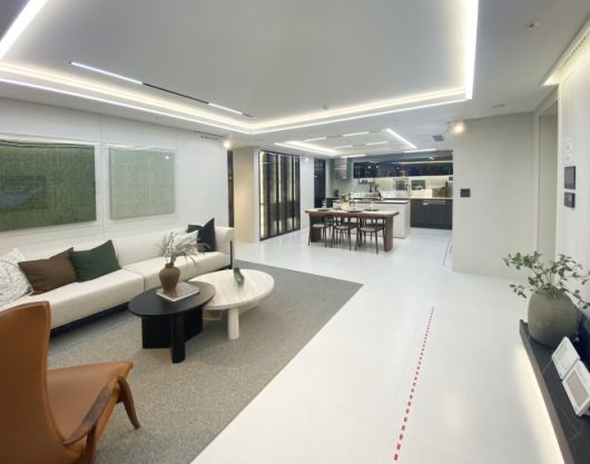 대형 평형인 101㎡ 타입은 하이엔드 주거 문화를 지향하는 수요자들을 위해 펜트하우스 수준의 개방감을 선사한다. 광폭 거실과 주방 설계, 각 침실 크기를 여유 있게 구성한 ‘와이드 평면’을 적용해 대가족이 거주하기에도 부족함이 없다. 문장건설 관계자는 “단순히 넓어 보이게 만드는 눈속임이 아니라, 문장건설만의 설계 철학과 고집으로 완성한 ‘진짜 넓은’ 공간감이 핵심”이라며 “특히 주방은 6인용 식탁을 놓아도 동선이 넉넉해 주부들로부터 ‘이런 넓은 주방은 처음 본다’는 평가를 받고 있다”고 말했다.