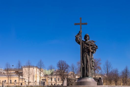 러시아 수도 모스크바 한복판에 10세기 말 키이우(키예프) 루시 공국을 통치했던 블라디미르 대공의 거대한 동상이 서 있다. 글항아리 제공 |