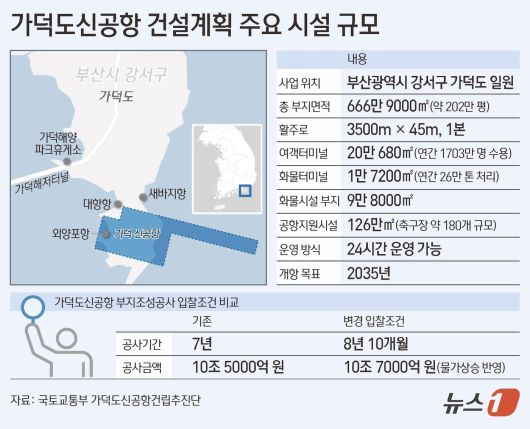 (세종=뉴스1) 조용훈 기자 = 가덕도신공항 사업이 시공사 이탈과 공기 논란을 넘어 새 국면에 접어들었다. 대우건설(047040) 중심 컨소시엄 재편과 토지 보상·이주 대책 구체화로, 장기간 표류하던 공사가 '착공 모드'로 전환되고 있다는 평가다.