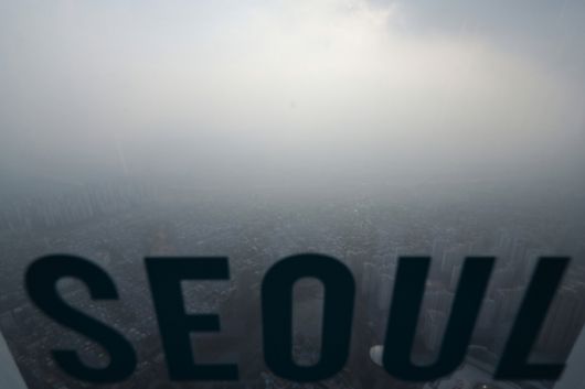 [미세먼지와 초미세먼지 농도가 나쁨 수준을 보인 지난 15일 서울 송파구 일대가 먼지로 뿌옇게 흐린 모습./사진=뉴시스 |