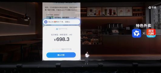 알리바바의 AI 어시스턴트 앱 '큐원' 대화 중 결제가 진행되는 모습. /알리바바 제공 |