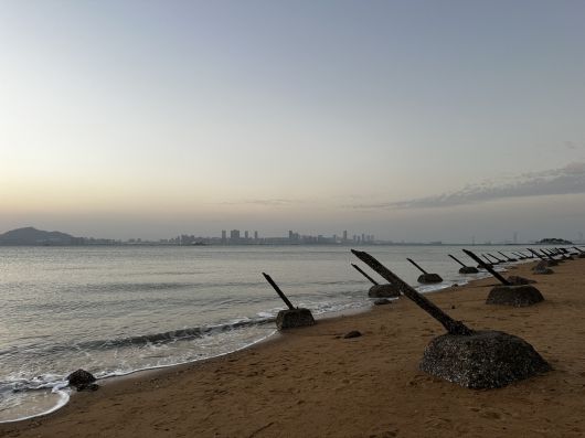 대만 최전방 도시인 진먼의 한 해변에 적군의 상륙을 방지하기 위한 쇠말뚝(용치)가 설치되어 있다. 사진: 권미나 대만 국립정치대 박사과정생 제공 |