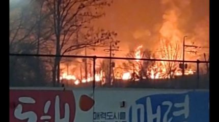 화염이 거세 밤하늘도 시뻘겋고 인근에는 소방차들도 속속 도착하는 모습도 보입니다.