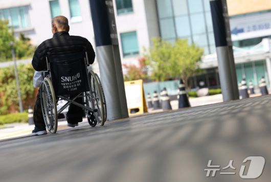 한 환자가 휠체어를 타고 이동하고 있다./뉴스1 김민지 기자 |