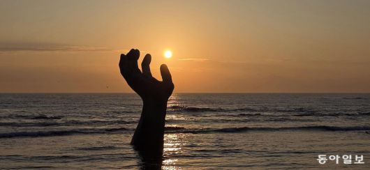 일출 직전 상생의 손 위에 갈매기들이 날아 앉았다. 포항=김선미 기자 kimsunmi@donga.com |