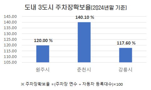 강원특별자치도 조사에 따르면 2024년 말 기준 원주시의 주차장 확보율은 120%를 기록했으나, 인구 유입에 따른 자동차 등록 대수 증가로 추가적인 주차 공간 확충이 필요한 것으로 나타났다.