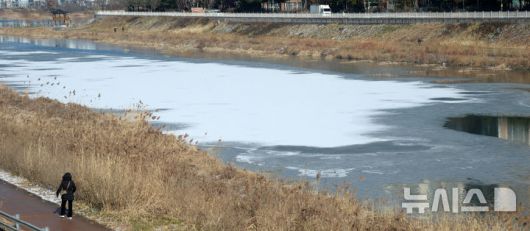 [전주=뉴시스] 김얼 기자 = 영하권의 날씨가 이어지고 있는전북 전주시 서신동 인근 전주천이 꽁꽁 얼어붙어 있다. 2026.01.11. pmkeul@newsis.com |