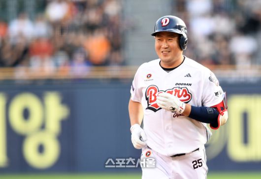 두산 양의지가 23일 잠실구장에서 열린 2025 KBO리그 한화와 경기 1회말 1사 한화 선발 황준서를 상대로 솔로 홈런을 친 뒤 베이스를 돌면서 미소를 짓고 있다. 잠실 | 박진업 기자 upandup@sportsseoul.com |