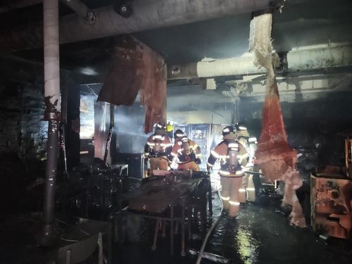 (서귀포=연합뉴스) 전지혜 기자 = 지난 15일 오후 11시 19분께 제주 서귀포시 남원읍 근린생활시설 건물 1층 식당에서 불이 났다.
