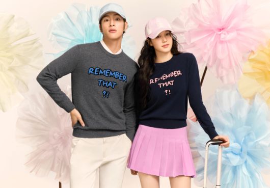 화보 속 네이비 컬러 니트를 선택한 여자 모델은 핑크 플리츠 스커트와 핑크 타이다이 패턴 볼캡을 매치해 배색을 맞춰 여성스러운 무드를 더했다. 남자 모델은 그레이 컬러를 선택해 블루 볼캡과 화이트 팬츠를 더해 깔끔하고 캐주얼한 필드룩을 완성했다.