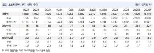 다만 단기 실적은 일회성 비용이 부담으로 작용할 전망이다. 최 연구원은 효성티앤씨의 2025년 4분기 영업이익을 575억원(영업이익률 2.9%)으로 예상하며 시장 컨센서스를 하회할 것으로 봤다.