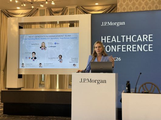 휴젤은 15일(현지시간) 미국 샌프란시스코에서 열린 제 44회 JP모건 헬스케어 컨퍼런스에 아시아태평양(APAC) 트랙 발표 기업으로 참가했다. 이 자리에서 첫 공식석상에 나타난 신임 캐리 스트롬(Carrie Strom) 휴젤 글로벌 CEO는 “미국 시장에서 하이브리드 판매와 전략적 투자를 확대함에 따라 2028년까지 연매출 9000억원 달성을 기대한다”며 “특히 전체 매출의 30% 이상을 미국 시장에서 창출하겠다”는 목표를 밝혔다.