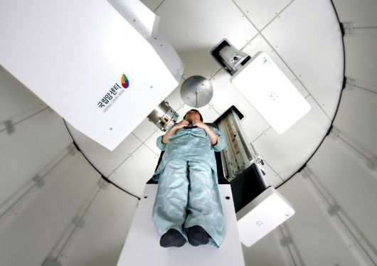 부비동암의 치료는 절제 수술을 기본으로 항암치료와 방사선요법을 병행한다. 특히, 최근 방사선요법으론 얼굴 주변 부위에 대한 방사선 노출을 최소화하기 위해 양성자 치료를 선호하는 추세다. 국립암센터 양성자치료센터에 설치된 회전빔치료기에서 환자가 양성자치료를 받고 있는 모습. 국립암센터 제공 |