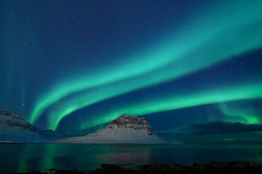 아이슬란드 키르큐펠 산 너머로 오로라(북극광)의 모습이 보인다. 게티이미지뱅크 |