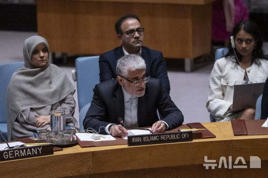 [유엔본부=AP/뉴시스] 이란 시위 사태와 대량학살을 막기 위한 1월 15일의 유엔안전보장 이사회에서 마이크 월츠 미 유엔대사는 미국의 공격 가능성을 언급하며 이란 대표를 압박했다. 사진은 지난해 6월 안보리에서 이란의 아미르 사에이드 이라바니 유엔대사가 발언하는 장면. 2026. 01. 16. |