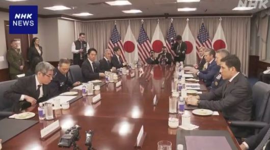 미일 국방장관 회담 모습 [사진=NHK 캡처] |