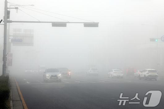 (청주=뉴스1) 임양규 기자 = 16일 오전 짙은 안개로 저시정 특보가 발효되면서 충북 청주국제공항의 항공기 운항이 차질을 빚고 있다.