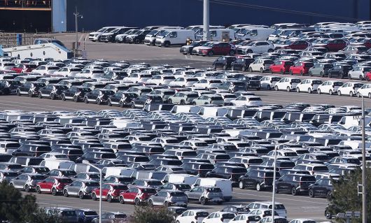 경기 평택시 포승읍 평택항 부두에 수출을 위해 선적 대기중인 차량들. /뉴스1 |
