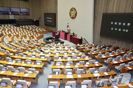텅 빈 본회의장 속 무제한 토론