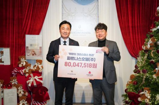 파르나스호텔이 지난해 12월에 진행한 '희망의 크리스마스 트리' 자선 캠페인을 통해 총 8004만원 이상의 성금을 모금하며 23년 캠페인 역사상 최고 모금액을 기록했다고 16일 밝혔다. [사진=파르나스호텔] |