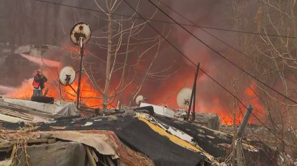 네, 지금은 날이 밝았지만, 제 뒤로 시뻘건 불길이 아직 여전히 보입니다.