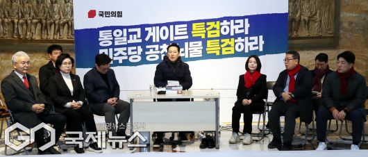 (서울=국제뉴스) 장동혁 국민의힘 대표가 16일 오전 서울 여의도 국회 로텐더홀에서 '민주당의 공천 뇌물·통일교 게이트 특검 수용' 촉구 단식농성을 하고 있다./사진=이용우 기자