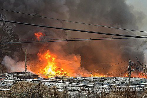 (서울=연합뉴스) 최원정 기자 = 16일 오전 5시께 서울 강남구 개포동 구룡마을 4지구에서 불이 났다.