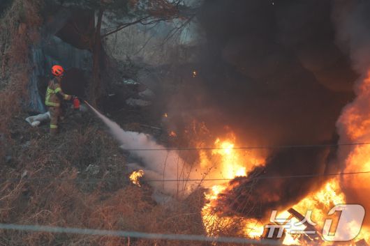 (서울=뉴스1) 김진환 기자 = 16일 오전 서울 강남구 개포동 구룡만을에서 불이나 출동한 소방대원이 불길 확산을 막고 있다.kwangshinQQ@news1.krCopyright ⓒ 뉴스1. All rights reserved. 무단 전재 및 재배포, AI학습 이용 금지.