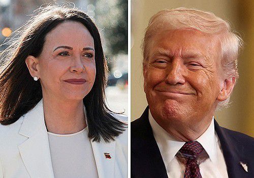 | 베네수엘라 야권지도자 마차도(왼쪽)와 트럼프 미 대통령 / 사진=연합뉴스 |