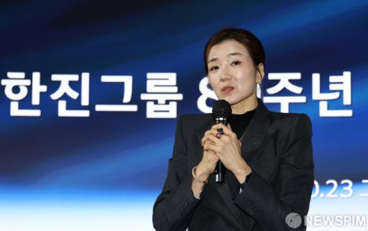 [서울=뉴스핌] 최지환 기자 = 조현민 한진 사장이 23일 오후 서울 용산구 그랜드하얏트 서울에서 열린 한진그룹 80주년 기념식 매체설명회에서 취재진 질문에 답변하고 있다. 2025.10.23 choipix16@newspim.com |