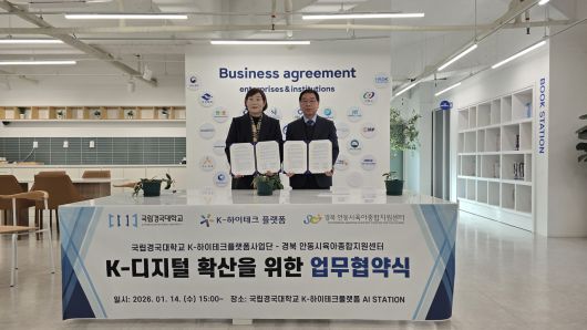 [헤럴드경제(안동)=김병진 기자]국립경국대 K-하이테크플랫폼 사업단은 지난 14일 지역 내 디지털 격차 해소와 AI 확산을 위해 (재)장애인기업종합지원센터 경북지역센터 및 안동시육아종합지원센터와 각각 업무협약(MOU)을 체결했다.