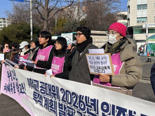▲지혜복 교사 2026년 투쟁 계획 발표 기자회견ⓒA학교 성폭력사안·교과운영부조리 공익제보교사 부당전보철회를 위한 공대위 |