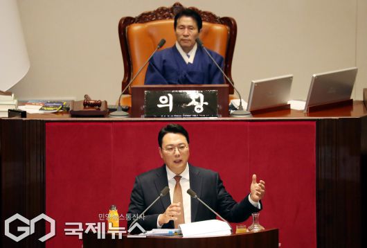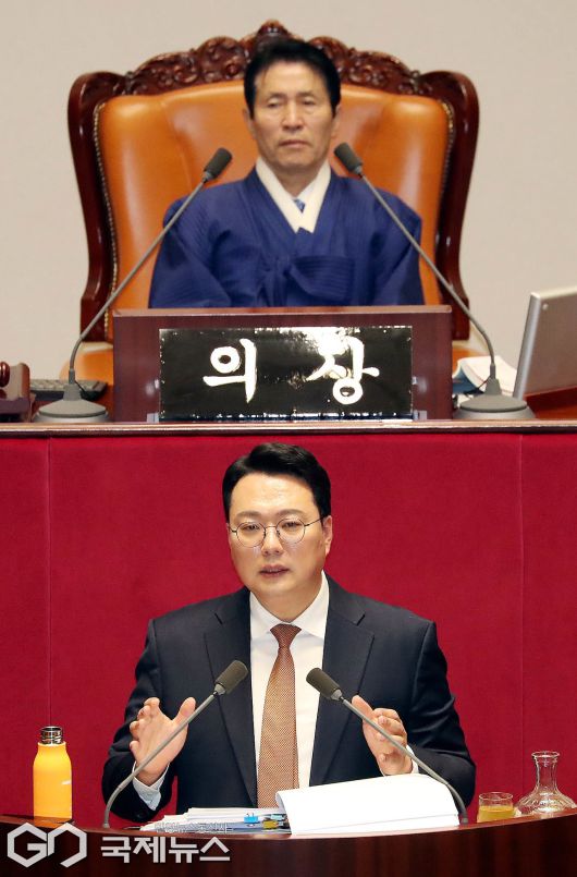 (서울=국제뉴스) 천하람 개혁신당 원내대표가 15일 국회에서 열린 본회의에서 '윤석열ㆍ김건희에 의한 내란ㆍ외환 및 국정농단 행위의 진상규명을 위한 특별검사 임명 등에 관한 법률안'에 대해 무제한 토론(필리버스터)을 하고 있다./사진=이용우 기자