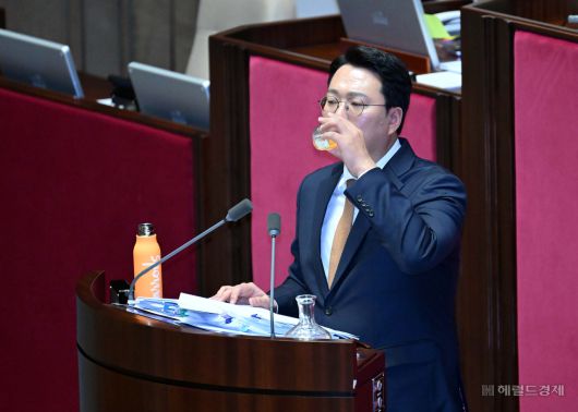 [헤럴드경제=이상섭 기자] 천하람 개혁신당 원내대표가 15일 국회에서 열린 본회의에서 ‘윤석열ㆍ김건희에 의한 내란ㆍ외환 및 국정농단 행위의 진상규명을 위한 특별검사 임명 등에 관한 법률안’에 대해 무제한 토론(필리버스터)을 하던 중 물을 마시고 있다.