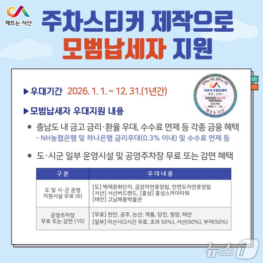 서산시가 제작한 모범납세자 차량 부착용 주차스티커 홍보물(서산시 제공. 재판매 및 DB금지)2026.1.16/뉴스1 |